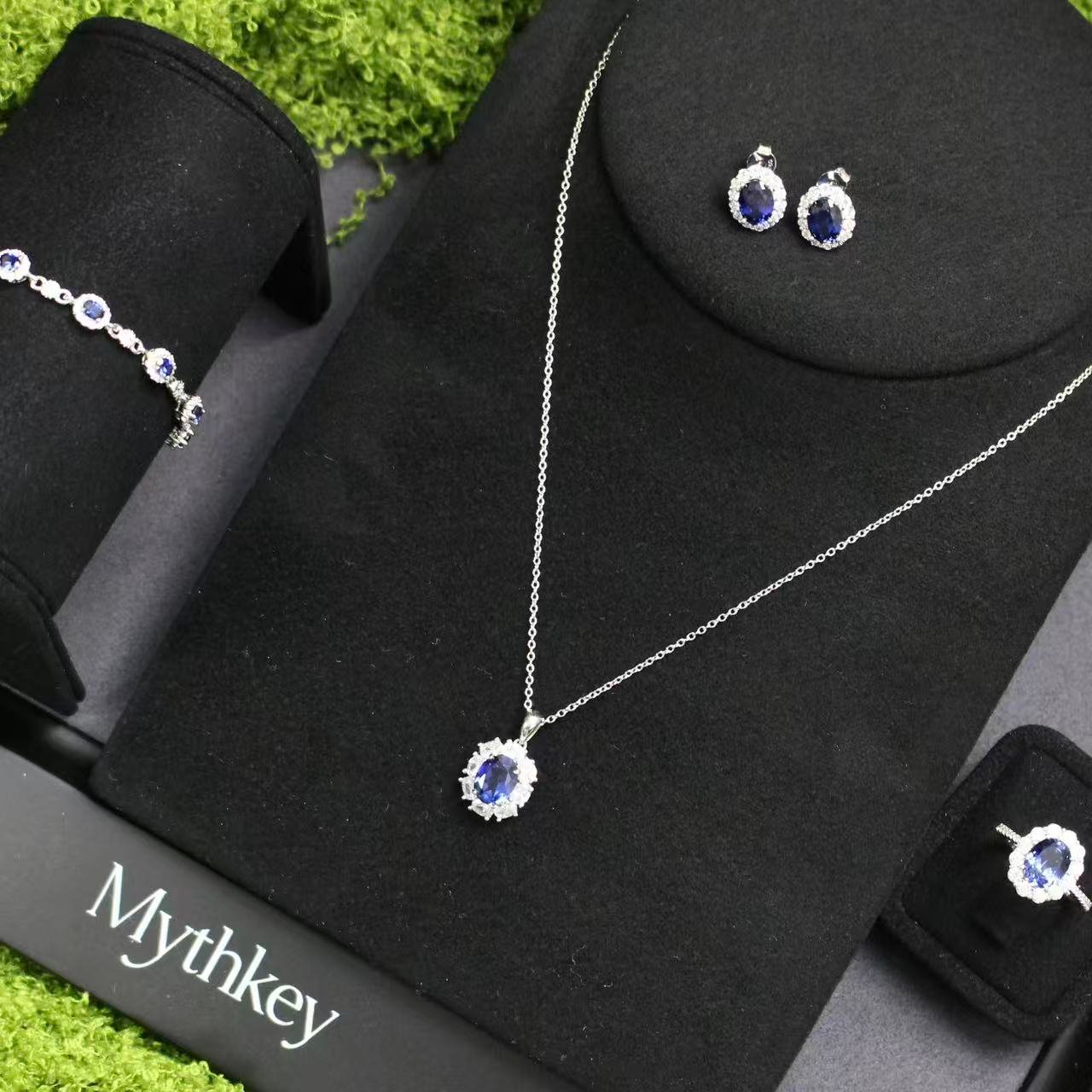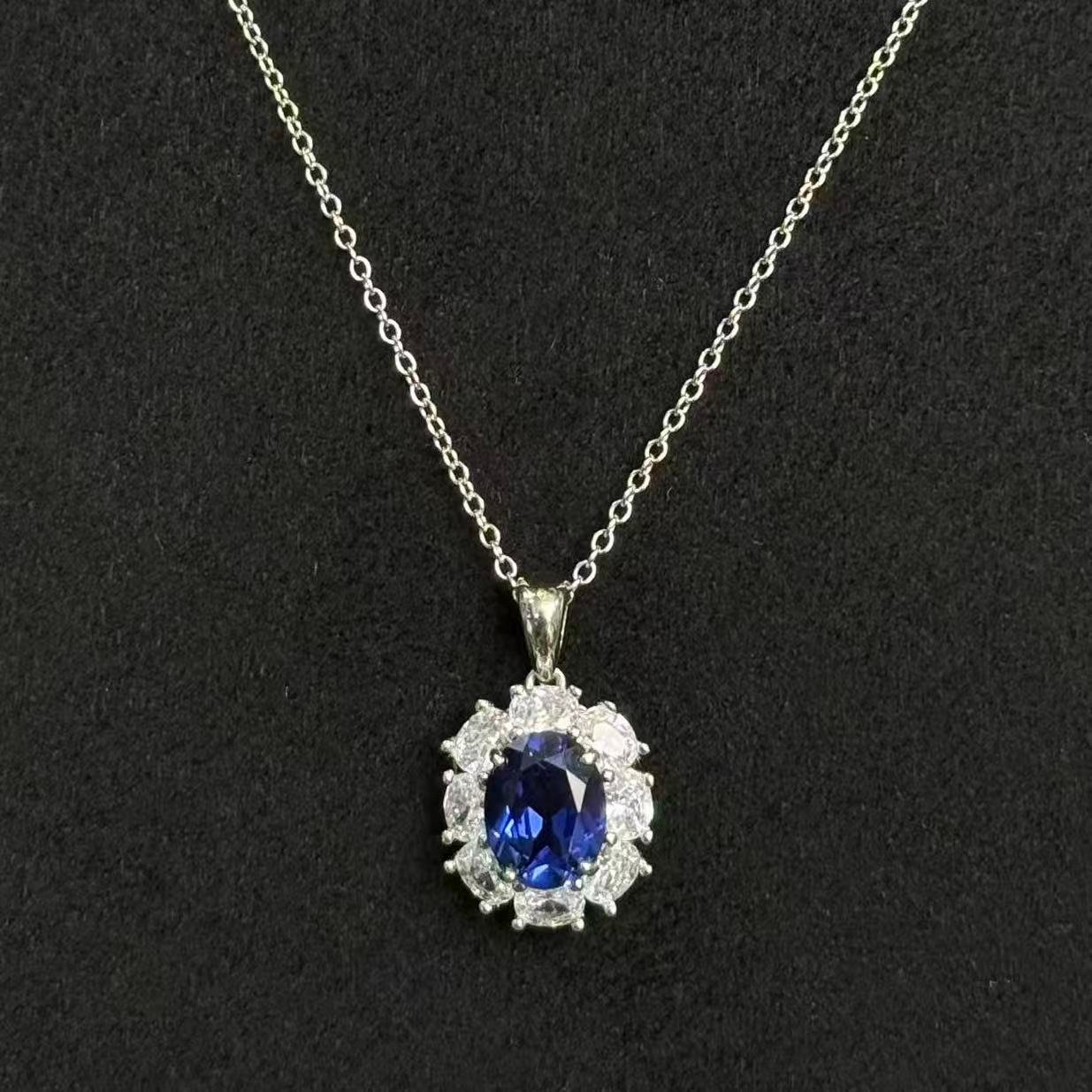 سلسال الماس الياقوت الأزرق الياقوتي البيضاوي MYTHKEY