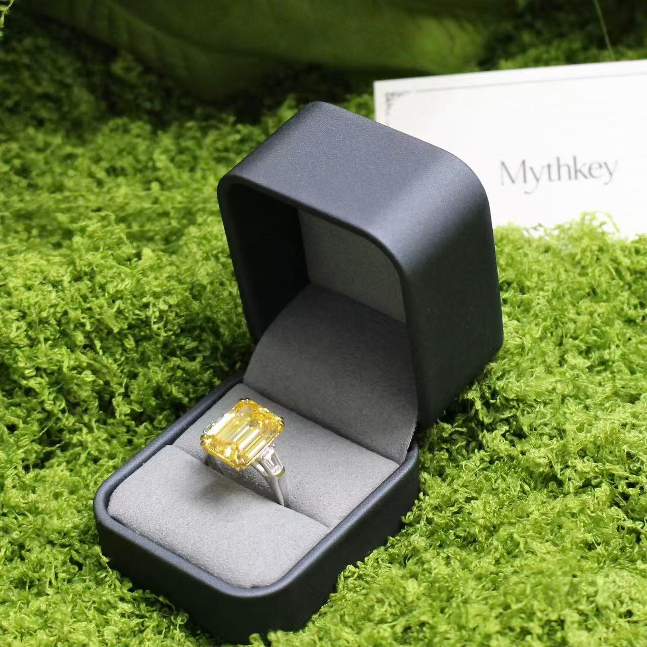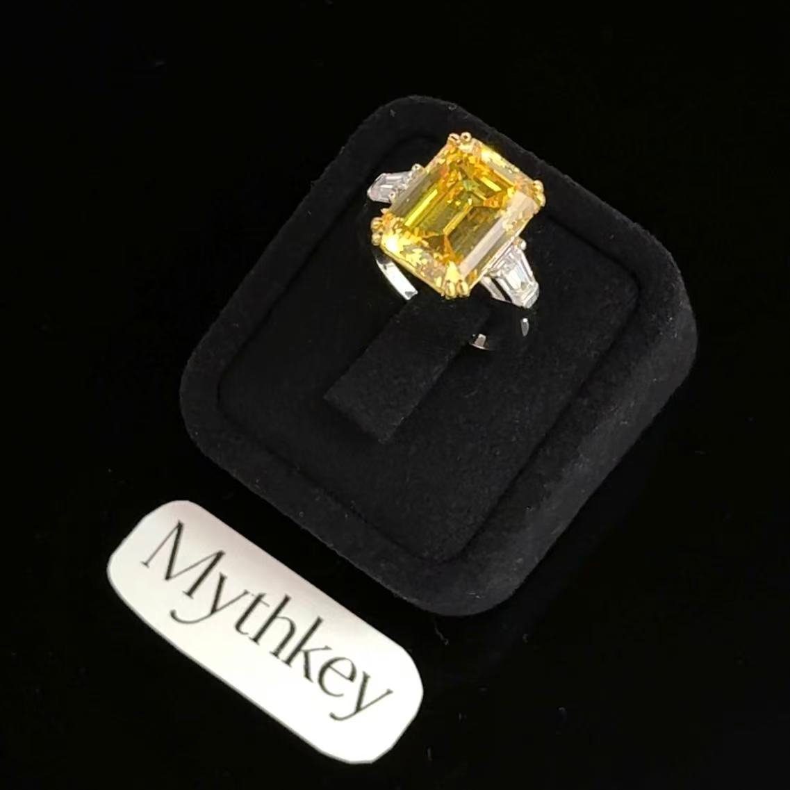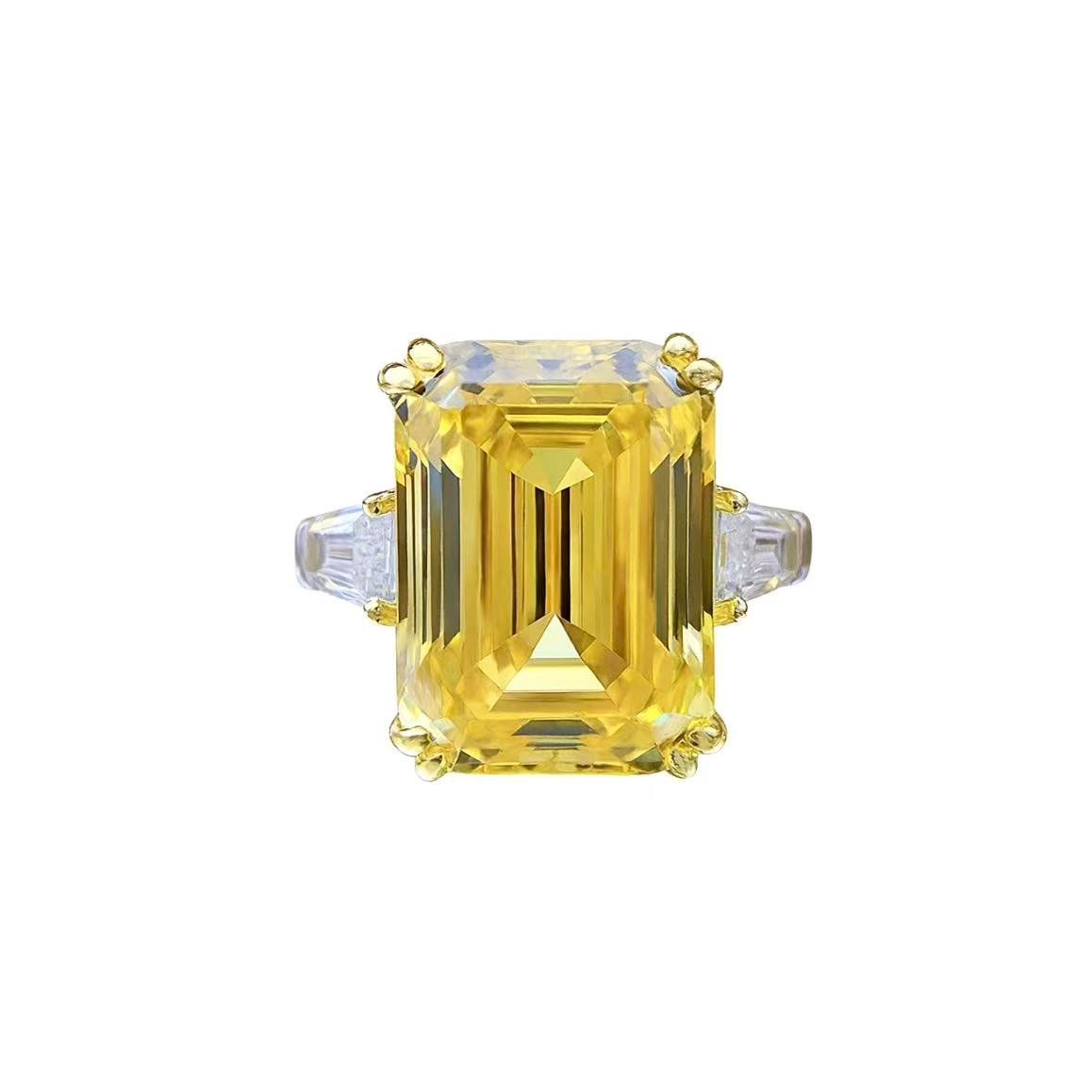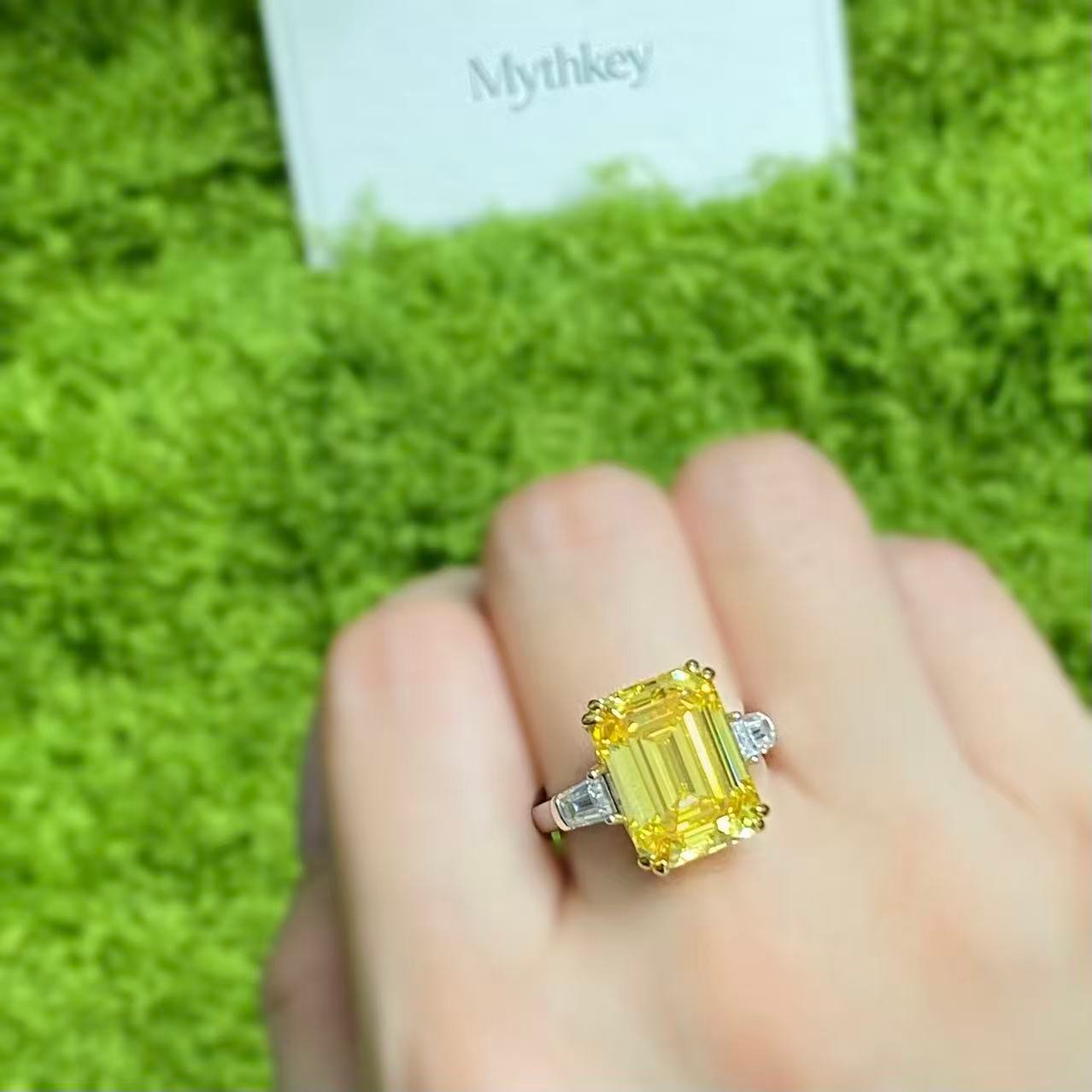 MYTHKEY 8 Carat Emerald-Cut Yellow Crystal Diamond Ring